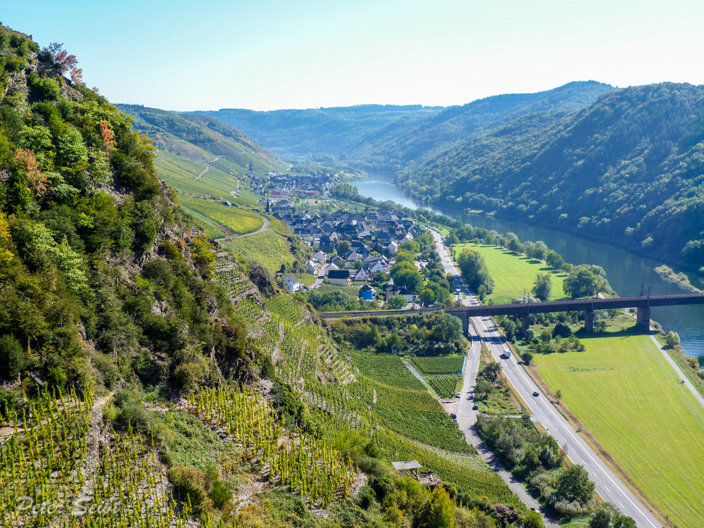 Man kommt immer weiter hinauf und kann von hieraus schon den Ort Bremm erkennen.