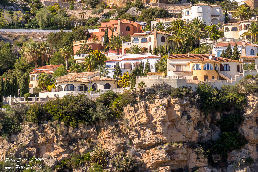 Überall stehen große Luxusvillen auf den Felsen.